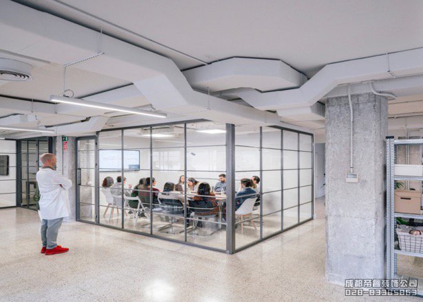 設(shè)計師恢復整體的混凝土結(jié)構(gòu),突出原始功能并在新舊架構(gòu)之間建立聯(lián)系,使得各個空間擁有不同的心理感受。會議室這樣設(shè)計可以讓人心情趨于平靜,也能集中心思進行會議的探討。